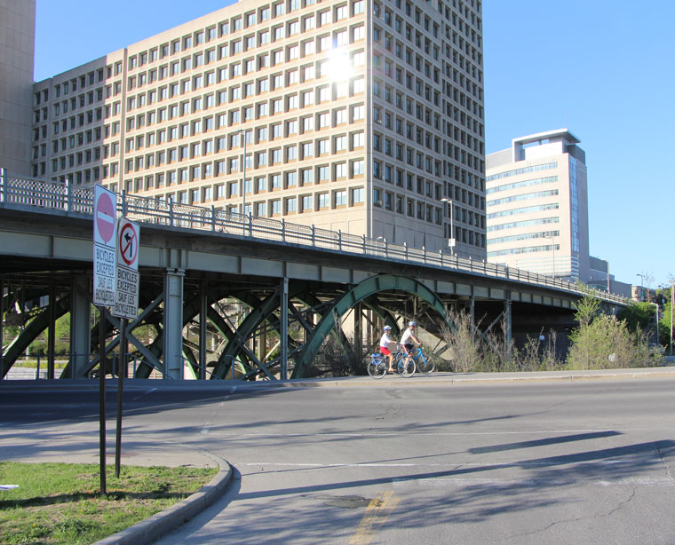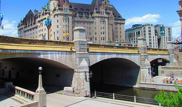 Laurier Avenue Bridge allows travel across Laurier Avenue and the Rideau Canal, marked by green steel arches that make it one of Ottawa’s most recognizable bridges. In 1872, the first bridge was constructed here, expanded to four lanes in 1900 and widened by 50% in 2001.