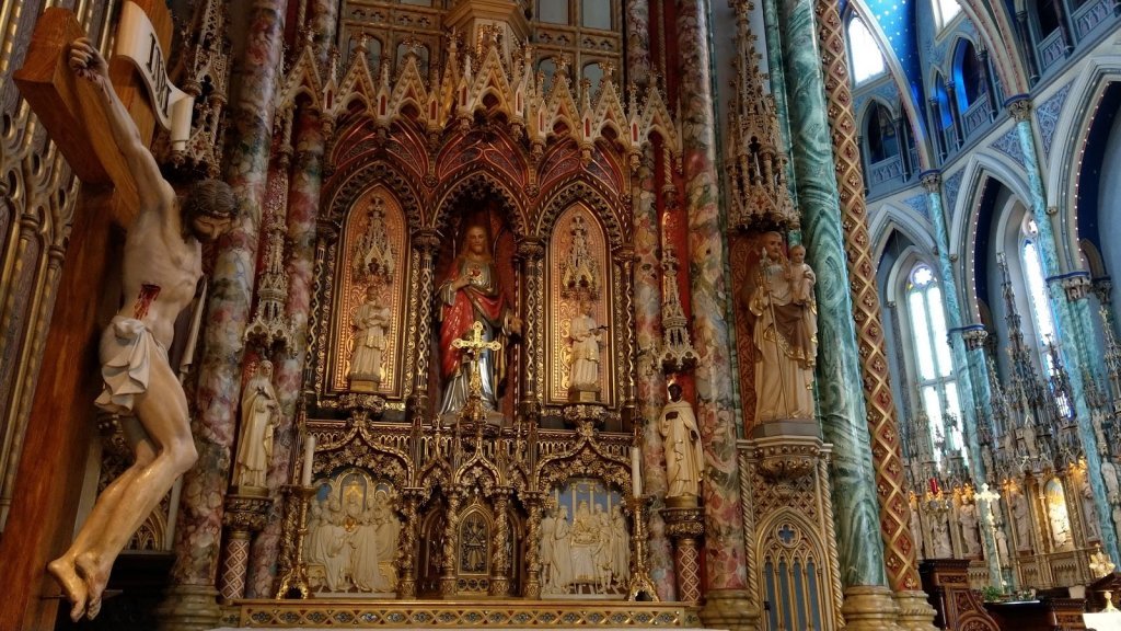 By 1978, the basilica was recognized as a heritage site in Ottawa. In 1999, it closed for restoration. The basilica offers a tranquil place for silent prayer. Visitors are captivated by the magnificent murals, intricate carvings, finely crafted stained glass, indigo ceilings with stars, and hundreds of religious statues. Each person crossing the threshold of Notre-Dame Cathedral Basilica finds a sense of peace and solace.