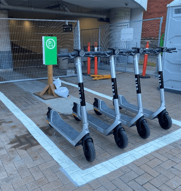Parking is allowed only in furnished sidewalk zones that are at least 2 meters wide. This means riders cannot leave scooters on roadways, grass, or in pedestrian areas.