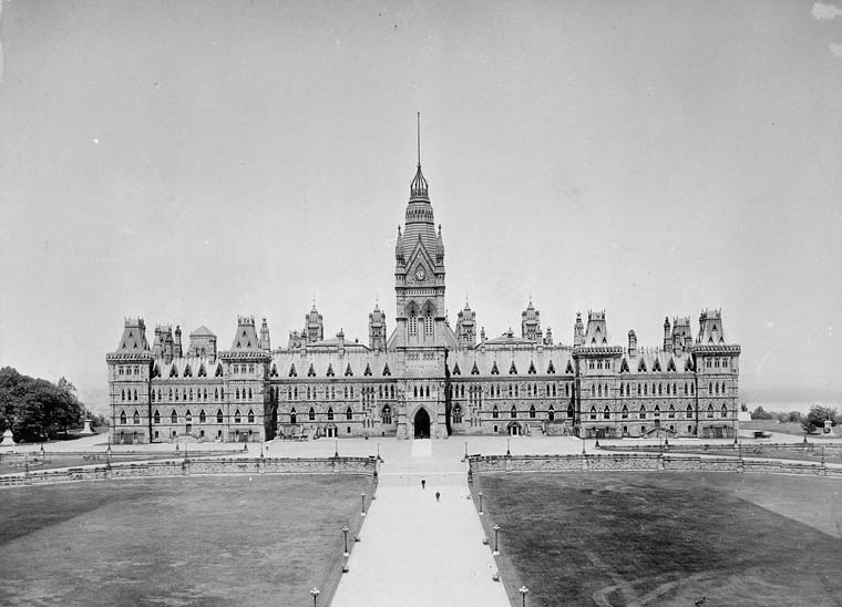 З початком будівництва урядової будівлі довго не затягували. Це повинна була бути велична будівля з унікальною архітектурою, яка б своїм виглядом показувала всю велич молодої країни. Тому відразу, у 1859 році, заклали фундамент споруди. Активна фаза будівництва розпочалась з приходом тепла – навесні 1860 року. Будівлю зводили з древнього пісковика, який мав гарне червоне забарвлення та деяких інших місцевих порід. Камені сірих та зелених відтінків використовували для даху. Крім цього під час будівництва урядової будівлі в місто приїжджав представник королівської корони – принц Едуард VII. Він на будівельному майданчику урядової будівлі заклав мармуровий камінь з вигравіруваними іменами архітекторів та посадовців країни. Це був гарний символ для подальшого процвітання молодої країни та новоствореного законодавчого органу Канади.